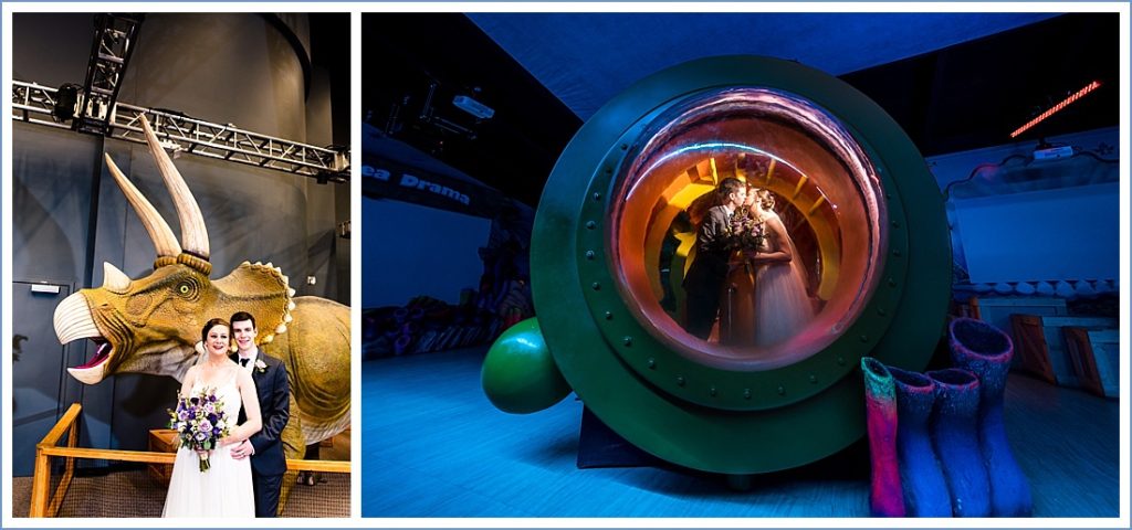 Courtney & Ben got married under a nebula, invited dinosaurs, and made their escape in a yellow submarine. GIVE ME ALL THE GREENSBORO SCIENCE CENTER WEDDINGS!!!