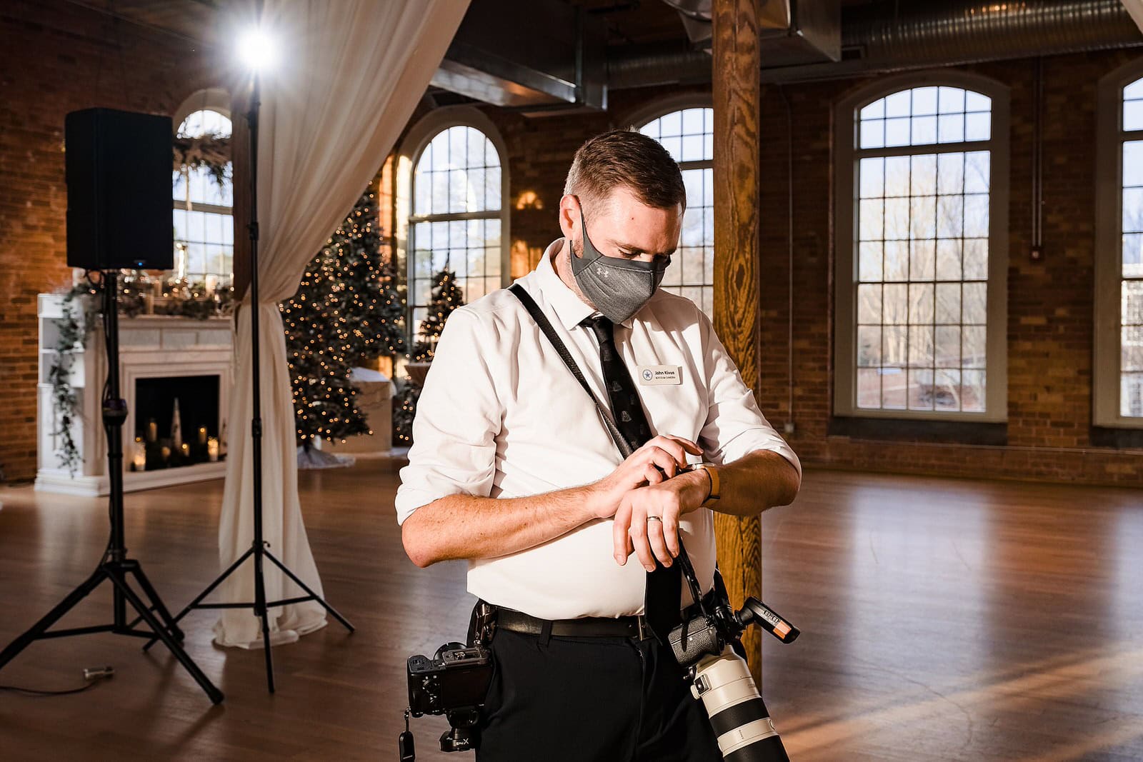 First up are some behind the scenes from Kim & Andy’s wedding, which happened before COVID shut everything down (hence the now conspicuous lack of masks). At this wedding, we worked with officiant Gwen Downs, Michael from All Around Raleigh DJ, and Timeless Events NC, all of whom you can spot in some of these behind the scenes shots.