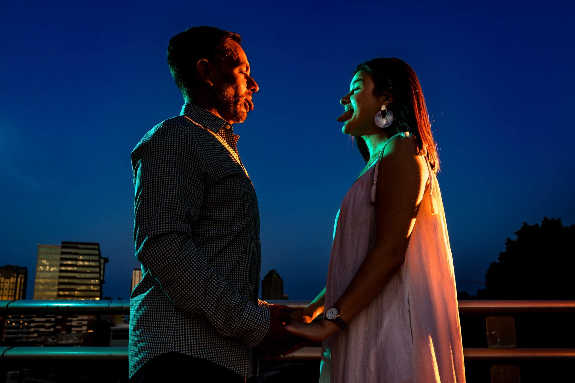 I always encourage couples to think of places that are significant to them for an engagement session setting. Liz & Matt suggested one of their favorite spots to grab a beer: Lynwood Brewing Concern in downtown Raleigh. After some beer and a game of cards, we headed over to get photos with the skyline as the sun set over Raleigh. Here are some of my favorites from their session: