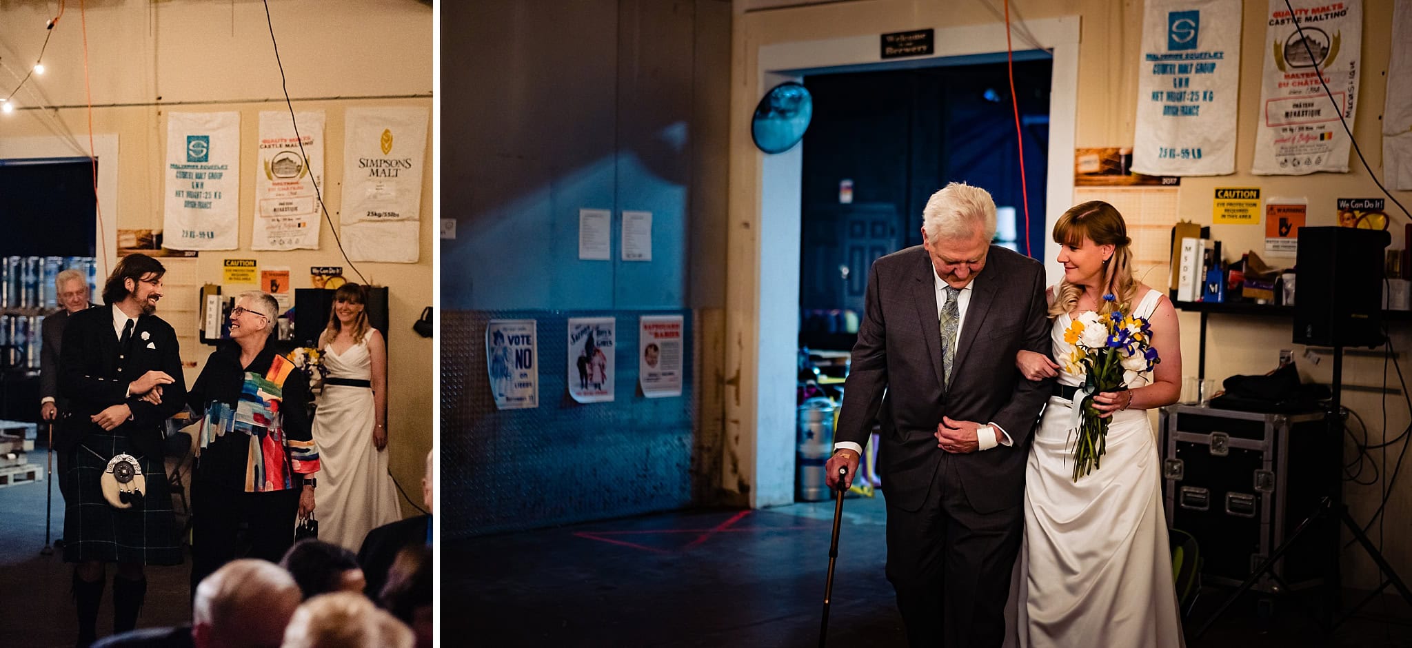 Later that day after showers and naps, everyone got ready for the ceremony – shoutout to Nina from Wedded Kiss who did hair and makeup for the bride and her bridesmaid Colleen – and headed to Mystery Brewing in Hillsborough. The ceremony, held in Mystery’s operating brewery, incorporated a Scottish blessing and hand-fasting, as well as a Polish blessing (featuring bread and wine).
