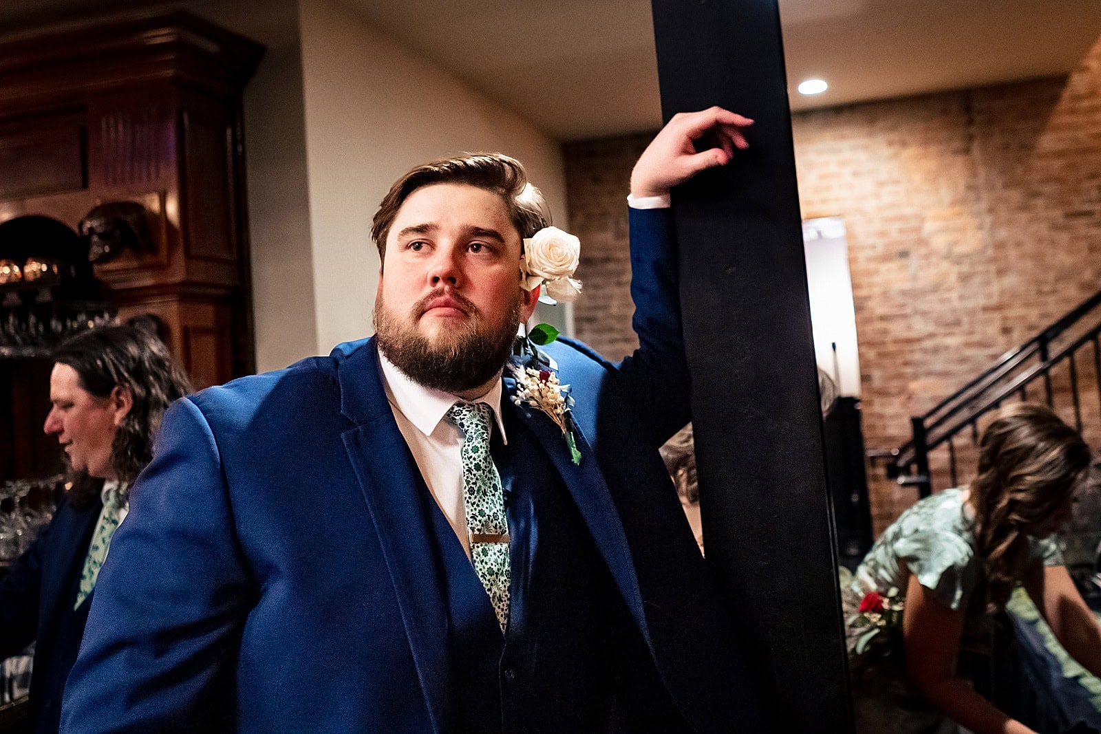 Everyone gets ready for the party in their own way – Dax rocked a fallen bouquet flower to match his tie…