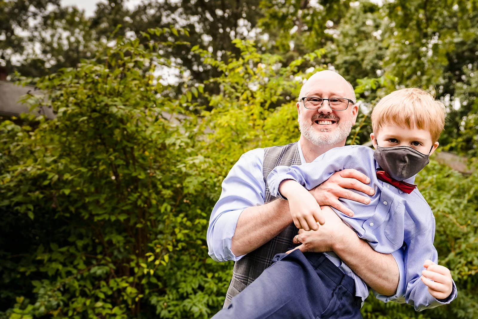 The tables they had set up in the backyard were spaced so that family groups could sit together and maintain distancing while everyone was watching the ceremony and then eating. And of course there was plenty of hand sanitizer available!