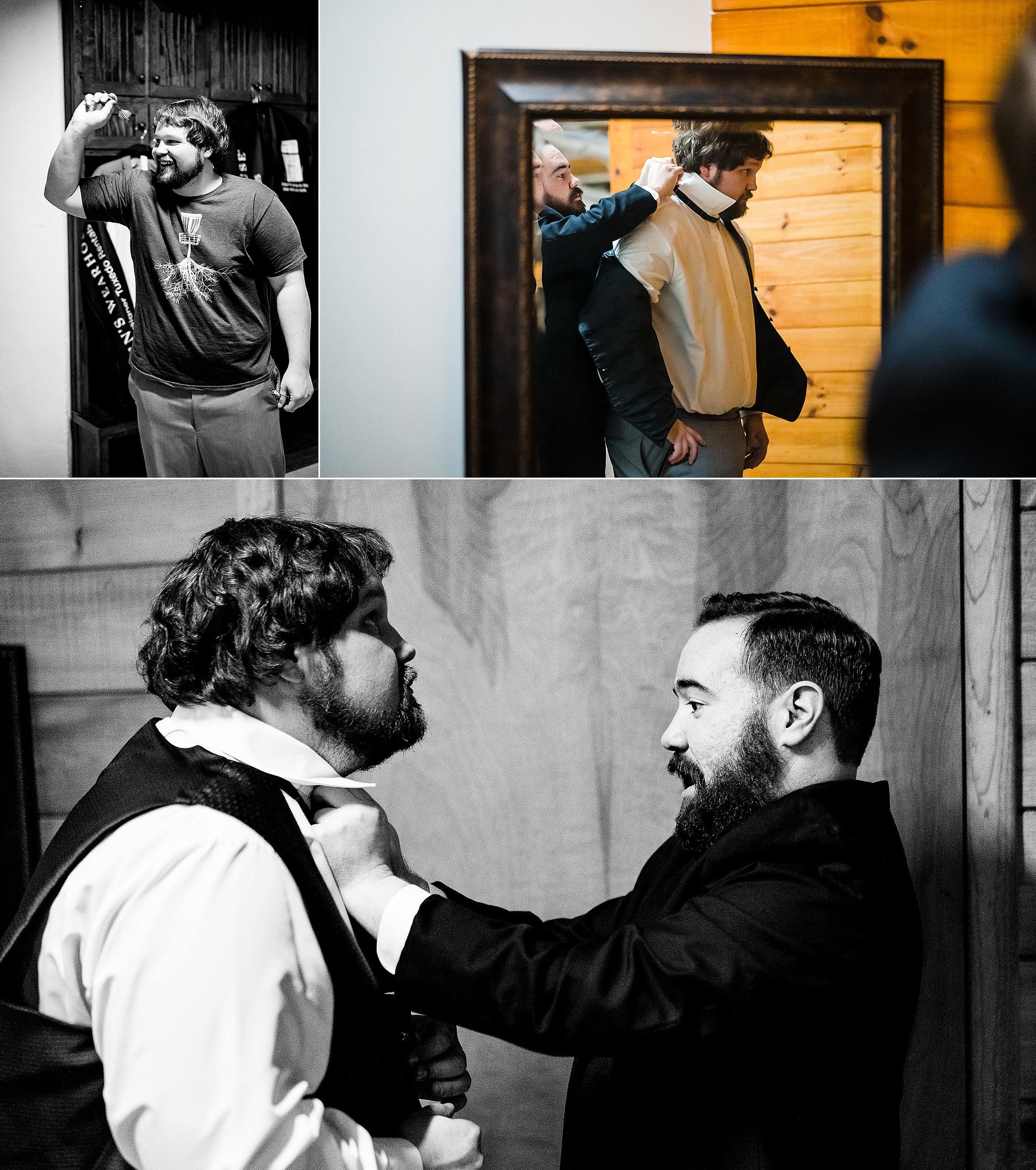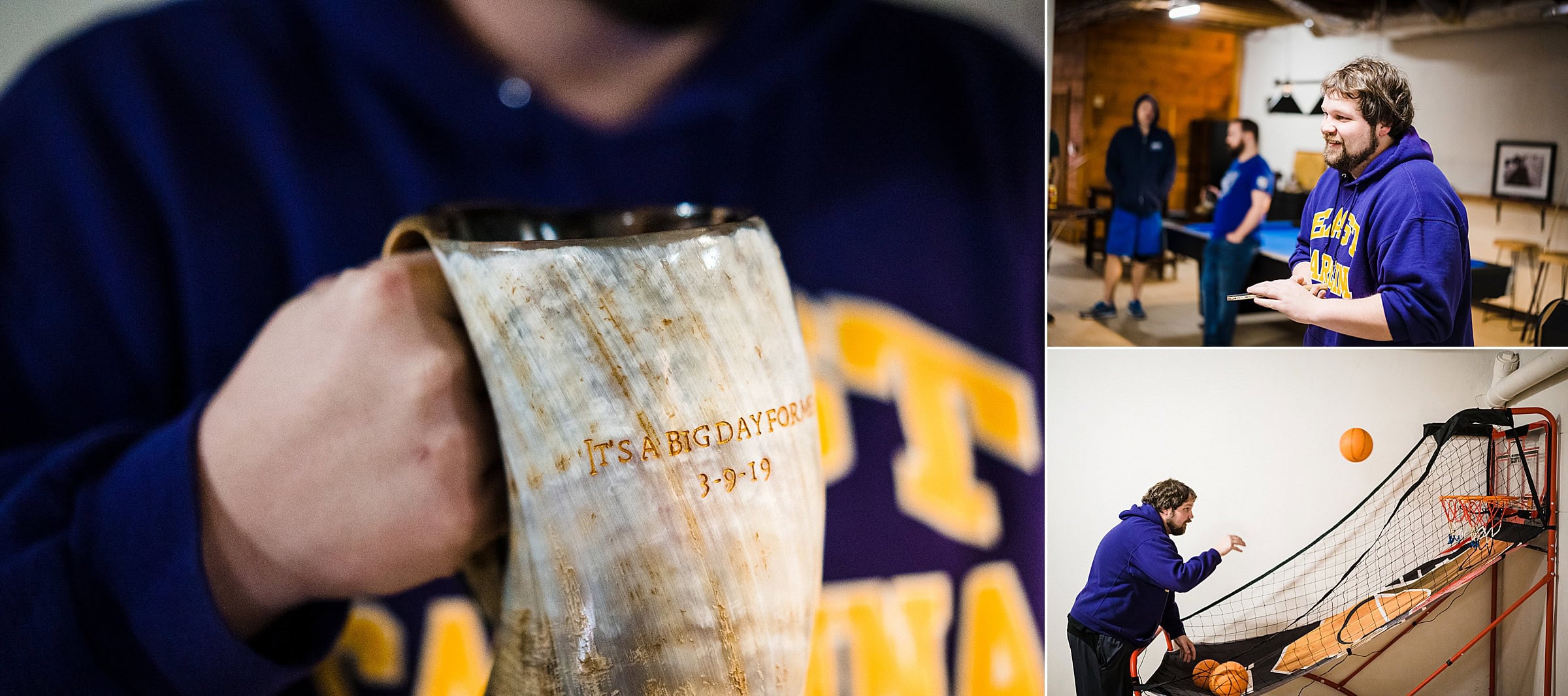Let’s start with the guys, since we rarely do that. Alex and his groomsmen got ready in the downstairs game room at the main house at Barn at Valhalla, where they toasted with custom elk horn mugs!