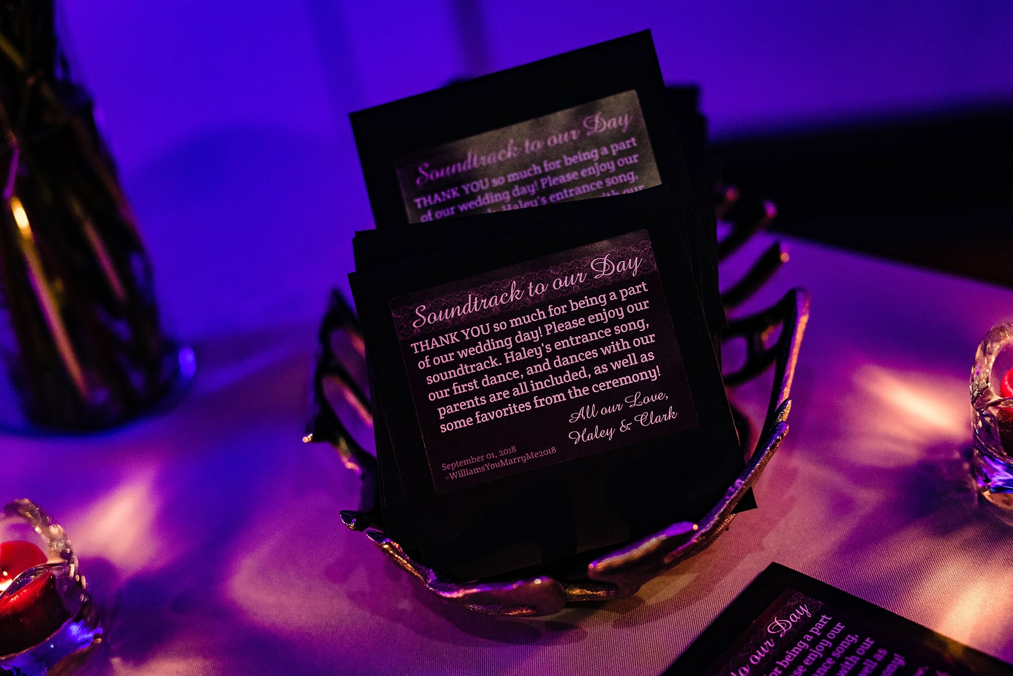 Since the night ended on the dance floor, I’ll cap this post with what is probably my favorite wedding favor I’ve seen to date: a soundtrack with music from Haley & Clark’s wedding day! How cool is that?