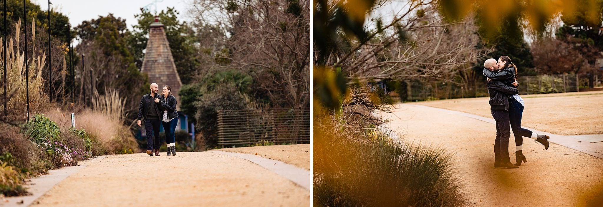 All the laughter. That’s what we witnessed at this JC Raulston Arboretum session. Samantha & Anthony have a contagious great attitudes, so John & I had a blast creating their engagement photos. We met up the day before the triangle got blanketed with snow, so it was cold, but they had love (and leather jackets) to keep each other warm. And even though it’s almost winter, autumn colors had not completely fallen away (see what I did there?).