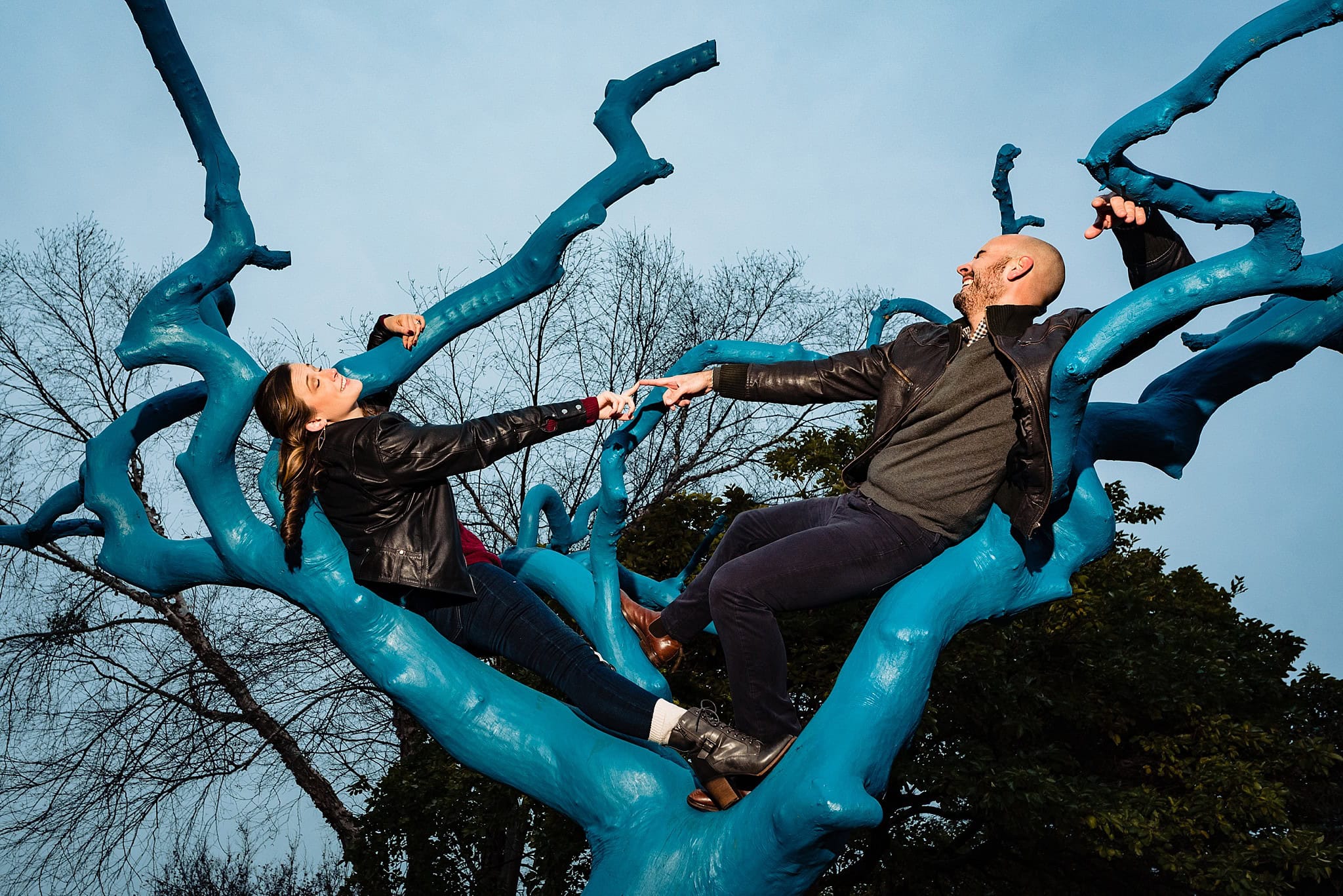 Samantha has a background in theater, but she wasn’t the only natural performer. They were both ready for anything, with fantastic senses of humor and adventure. I mean come on, not everyone has the courage to climb a tree during their engagement session. And this recreation? How’d they do Michelangelo?