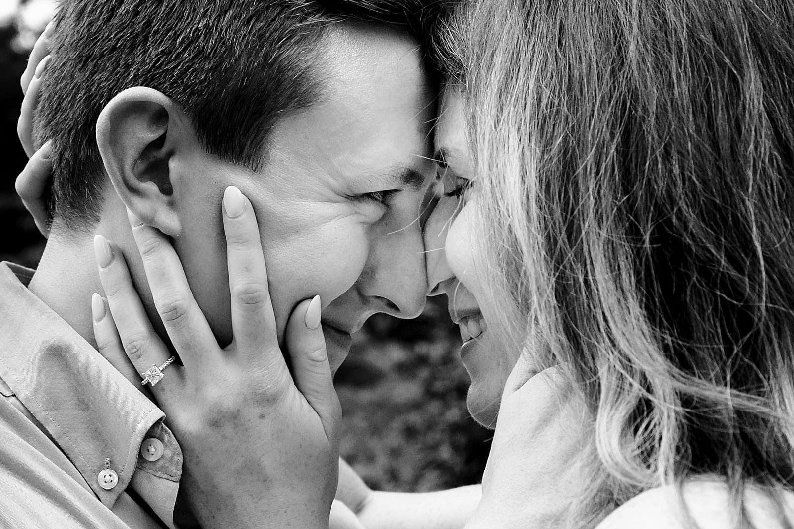 And in the meantime, we celebrate that engagement with a portrait session in Raleigh. We met up at the WRAL Azalea Gardens to start and y’all, it was hot and muggy. But these two didn’t let that stop them from snuggling up when I asked them too. Kudos to couples who get up close and personal during summer portrait sessions. Y’all are rockstars.