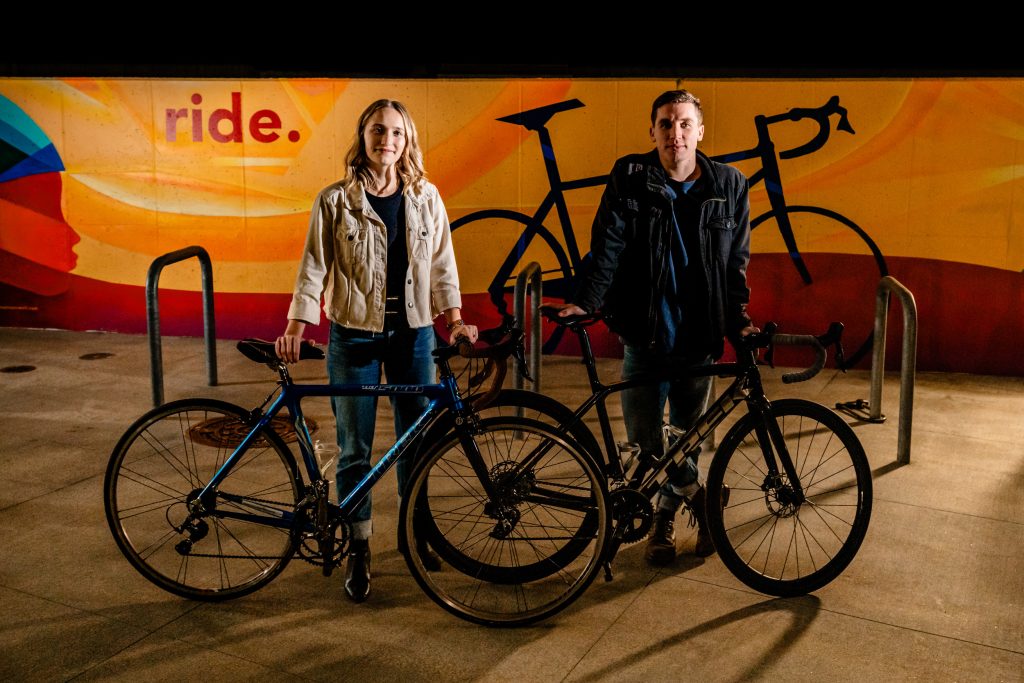 When Rosie & Chris asked if they could bring their bikes for engagement photos, I jumped at the opportunity to do some more creative things. We started with photos with their sweet pup Lucy (obviously) but then the session became pretty bike-centric, with a pit stop at Videri for some Black & White coffee.