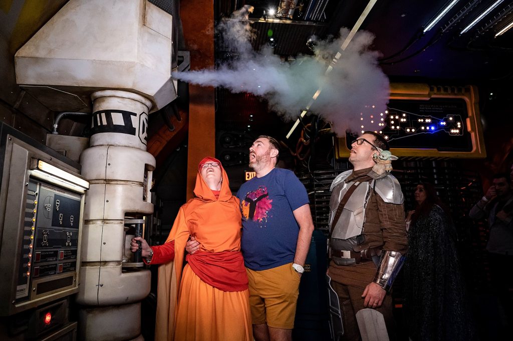 ***Note on the photos: I only took like 5 photos the whole trip. John & Seth took the vast majority of these photos/videos on their phones. John only took a few of me with one of our “real” cameras. We were too invested in having a great experience and being in the moment to photograph the way we would if this were a Kivus & Camera documentation. That said, there are some awesome professional photos in here shot by a Walt Disney World photographer. I put those into a slideshow gallery. You can check out my epic Naboo Handmaiden outfit and Seth’s Mandalorian armor