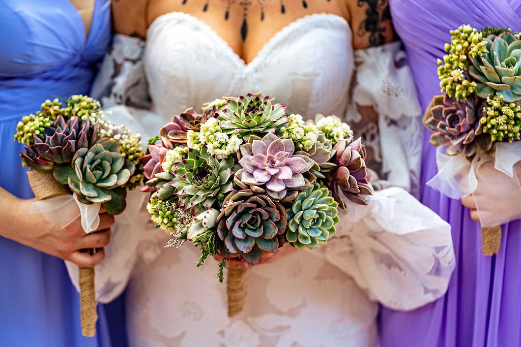 You can do bright color pops. You can keep the palette neutral. You can have fresh cut traditional blooms, explore the succulent route, even rent silk flowers. Put your wedding flowers into perfectly manicured arrangements or something that looks like it naturally happened. Opt for minimal table-scapes with bud vases, or go all out with flowers dangling from the ceiling and covering every surface.